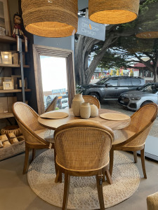 This stylish Dining Chair made from Mindi wood and Rattan, with a Off White Fabric Cushion.