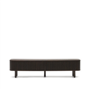 The Matielen TV cabinet comes in 2 sizes, both with curved lines and 2 sliding tambour doors, is made from ash wood and ash veneer in a dark finish. Inspired by the classic tambour-blind furniture of the 18th century in Europe, Mailen represents history, craftwork and long-lasting design. Using E0 manufactured wood with low formaldehyde emissions, to leave the planet cleaner of harmful substances.
